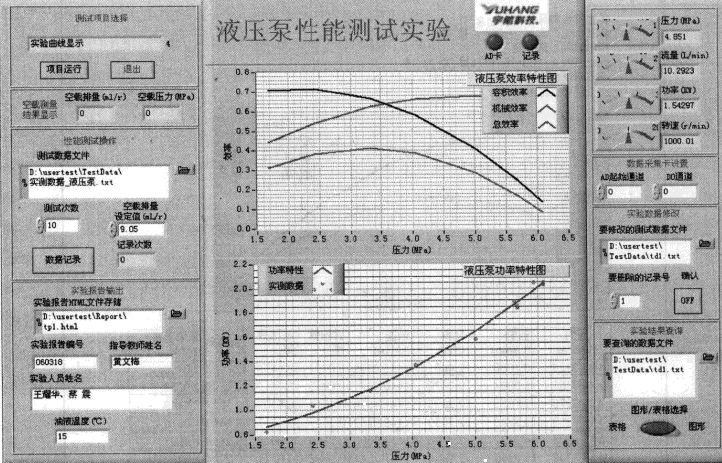用戶在接好回路調(diào)好泵的工作參數(shù)后,即可開始測試。用戶輸入測試參數(shù);鼠標(biāo)選擇測試項目選擇的【測試泵的基本性能】;鼠標(biāo)點(diǎn)擊測試項目選擇【項目運(yùn)行】,測試系統(tǒng)進(jìn)入測試狀態(tài),實時顯示參數(shù)內(nèi)的數(shù)字奄不斷更新。在預(yù)定的工作點(diǎn),用戶鼠標(biāo)點(diǎn)按【數(shù)據(jù)記錄】。計算機(jī)自動將實驗數(shù)據(jù)記錄在實驗數(shù)據(jù)表。